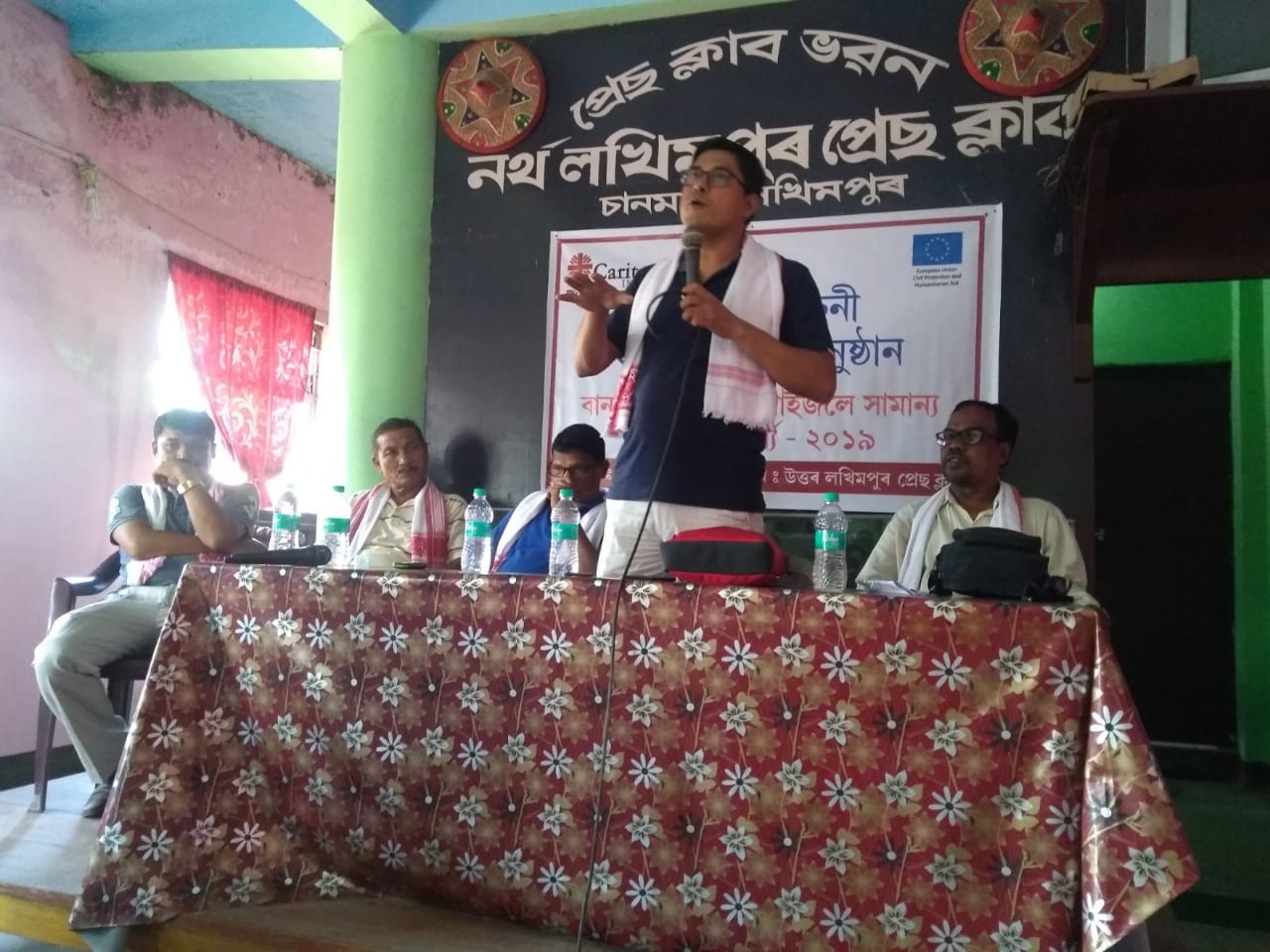 On the occasion of the official launching of the project, a ceremonial event along with a coordination programme was organized at North Lakhimpur Press Club under the aegis of the organization. It began with the lighting of the ceremonial lamp by the members of Lakhimpur Inter-Agency Group comprising of a local journalist, representatives of IGSSS, PAD, RVC, Action Aid WDC, and Villages heads. The program was graced by District Consultant IEC&WED, Public Health & Engineering, and Junior Assistant, Karunabari Block IAG Lakhimpur District Chapter discussed the project implementation challenges and way forward. Members of the local organizations stressed upon strengthening coordination and cooperation among them to collectively aid recovery and rehabilitation and facilitate disaster preparedness.