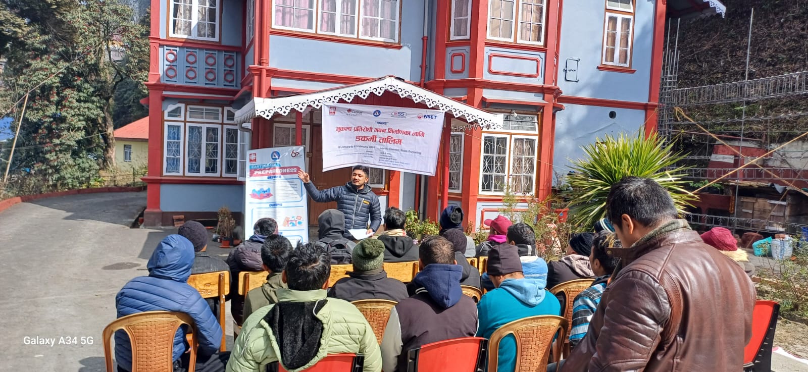 The program was inaugurated in the presence of Mr. Rajen Banerjee (Treasurer, Anugyalaya), Mr. Raju Pradhan, Mr. Suman Kharkha (Caritas Germany) and the NSET team. The training blended theoretical knowledge with hands-on practical sessions, focusing on earthquake-resilient construction and retrofitting. Despite challenging weather conditions, the masons proactively participated and interacted throughout the training program. They appreciated the relevance of both theoretical and practical aspects which could be contextual for every region and still improve strength of the hanging and non-hanging structures.