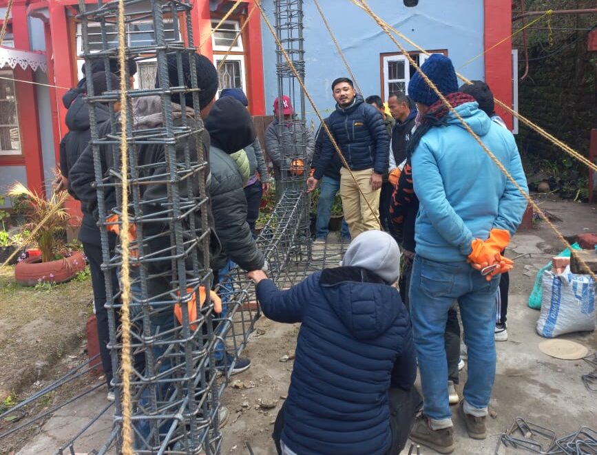 Facilitated by resource persons from NSET Nepal and ESS (Earthquake Safety Solution), the five-day training program took place from January 30th to February 3rd, 2024. Nineteen masons from four Gram Panchayats (Goke, Rangit, Sindebong, and Bhalukhop) and three engineers from Darjeeling and Kalimpong districts participated in the program. The objective was to equip participants with knowledge and skills in implementing earthquake-resistant construction techniques, fostering a comprehensive understanding of seismic forces and their impact on structures.