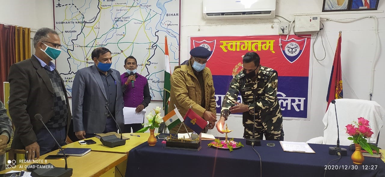 On 30th December 2020, the first meeting of the Special Juvenile Police Unit was held at Police Line Maharajganj District under the Chairmanship of Shri Nivesh Katiyaar, the Additional Superintendent of Police, Maharajganj who lighted the lamp before the launch.