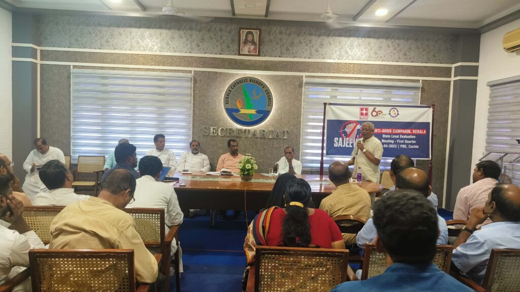 Caritas India leadership, Diocesan Directors of Social works from Kerala, and representatives of the KCBC Commission met to review the progress of Sajeevam (Anti-drug campaign) at POC, Palarivattom on 21st April 2023. The meeting discussed the campaign process, implementation challenges, rechecking the strategies and mode of operation, and also planning out the state-wise activity plan formation for the next quarter.