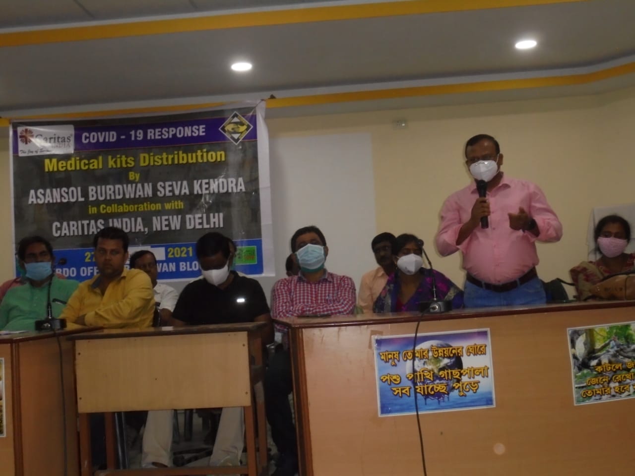 Caritas come forward to ensure the safety of the Frontline workers while they devoted their life treating the Covid 19 patient during the pandemic time. Caritas India with the support from CAFOD DEC has designed a medical kit, especially for Frontline workers. In collaboration with Asansol Diocese- Asansol Burdwan Seva Kendra (ABSK), Caritas India has distributed 80 medical kits for the Frontline workers in Burgan-I Block, West Bengal.