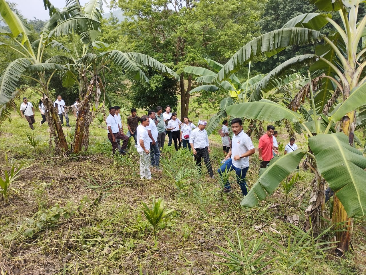 The team visited Koksi-Sangma under BAKDIL, Meghalaya, one of the program villages to witness the achievements. The entire team was divided into two groups and had an on-farm exposure. The field had a multi-tier orchard plantation (Banana, Areca nut, Ginger, Beetle nuts, and seasonal vegetables like Brinjal, and Chilly as intercrop) where the team interacted and learnt how to plan and raise the orchard with a detailed cost-benefit analysis for their larger understanding. The team also learned about patterns of land use changes adopted by farmers for ensuring food security. It was a very insightful and inclusive review where each team member was exposed to the field realities and learnt how to document the change along with the process.