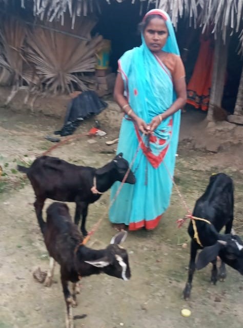 Under Nonfarm initiatives, Neelu Devi was provided 3 goats with proper rearing training to Promote her Livelihood. Periodic handholding support is being provided by Staff to record her progress. She has also now started working under MNREGA, after getting Enrolment and Job card. Under Covid Realignment Program, she expressed her interest in Goat rearing as she used to breed goats before the lockdown. But during the lockdown, she had to sell all her goats for cash to feed her family.