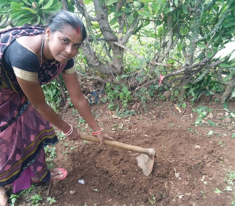 “We don’t own any land to cultivate our food; even we don’t have a pucca house. Every day we work on others land to earn our living,” sadly expressed Vimala while sharing the ordeal of the family to earn their livelihood. Laxmi consoled her and motivated her to make opportunities from whatever she owns. She suggested using the idle land near her house to develop a nutrition garden.