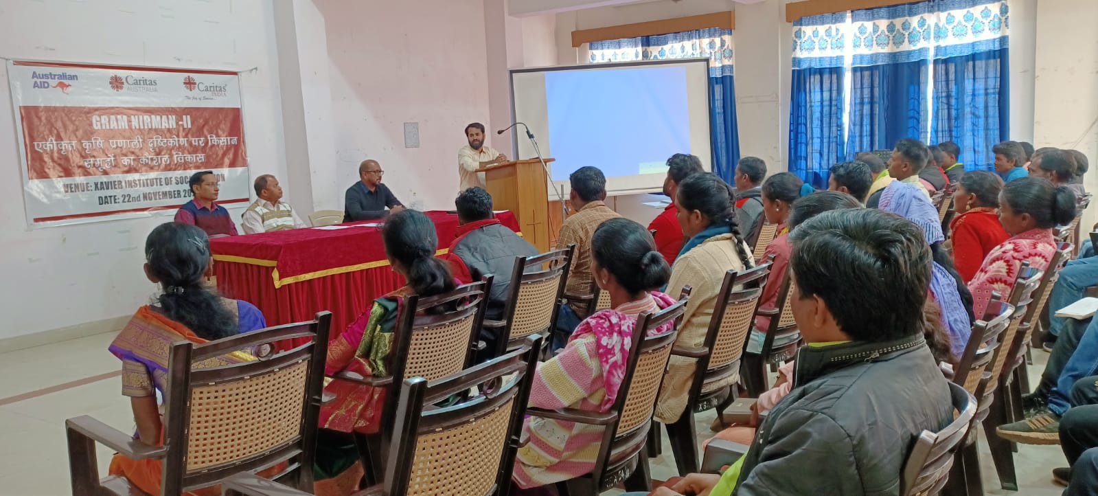 While setting this context, the Gram Nirman core team facilitated training on November 22, 2022, for selected farmers from 6 districts in the Chhattisgarh region at Xavier Institute of Social Action, Raipur. There were 32 farmers and 18 community educators from the districts of Bastar, Bilaspur, Rajnandgaon, Jashpur, Surguja and Raigarh who took part in the training session.