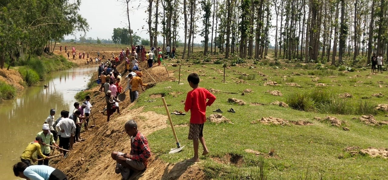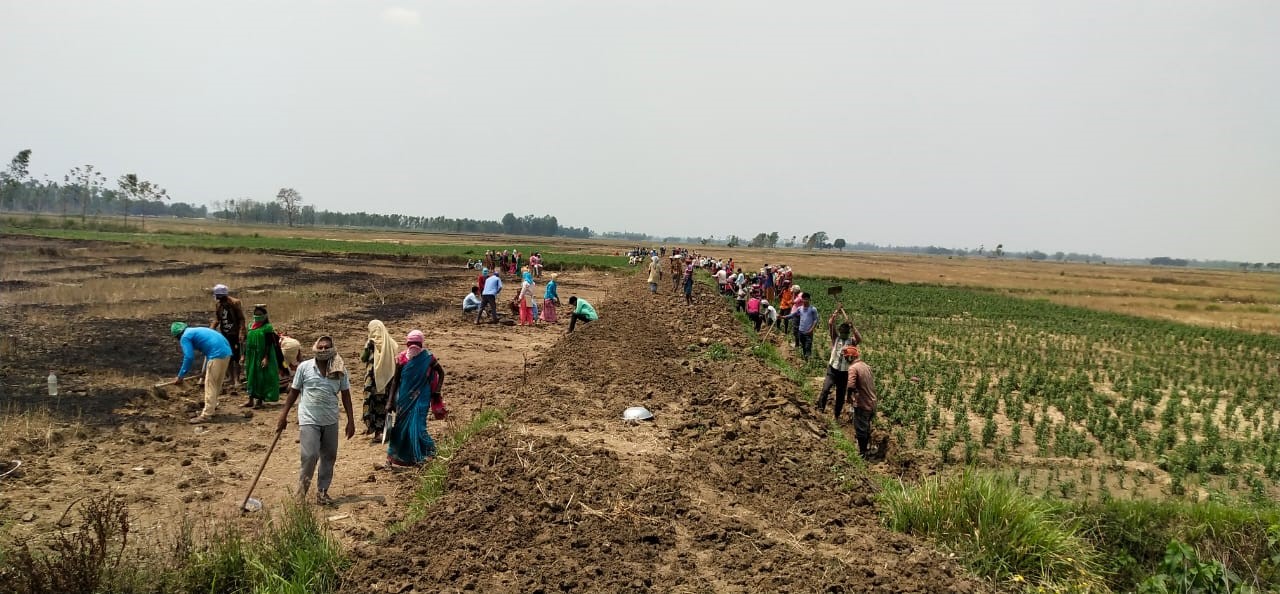 Caritas India Partners DSWS PGSS have been implementing Swaraksha AHT Program in these villages & they felt that this was a suitable time to mobilize the Gram Pradhans & encourage the workers to go for the MGNREGA work in their villages during the lockdown period. After some discussion with the Pradhan & Panchayat members, the scheme was rolled out for the home coming migrant workers so that they can earn wages in their villages itself. After certain compliant requirements and formalities, Mahatma Gandhi National Rural Employment Scheme was initiated in two villages – Barwakalan & Balai, which are located at the border with Nepal. Around 780 migrant workers were engaged in daily work of land/block bunding, making drains, levelling roads & cleaning the ponds. As per the revised wages under MGNREGA INR 202 per day is transferred directly to the account of the workers. The scheme has been a great help for those returning. Pradhan of these villages are making all efforts for quicker payments of these workers so that their needs can be fulfilled in this situation of crisis.