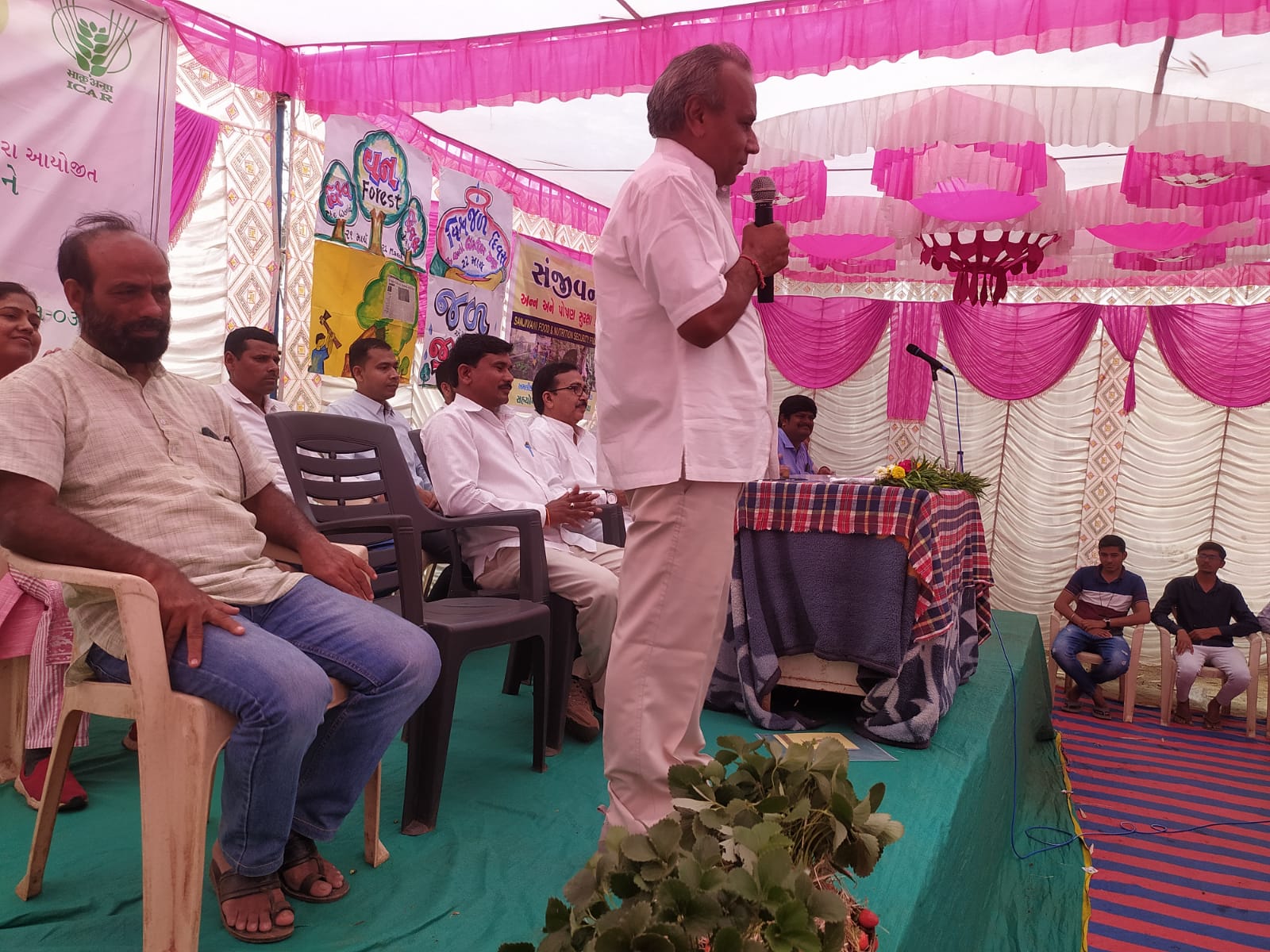 KVK Dediapada DSSS-Baroda and FPO- The Dediapada Vibhag Adivasi Khedut Vividhlakshi celebrated “Forest Day, International Water Day, and International Year of Millet. SEVA SAHKARI MANDLI co-organized the event on March 21, 2023, in the project village Vedchha, which was attended by approximately 700 project participants, including Village Nutrition Committee members and Women Lead Farmers from Sanjivani project villages.Eminent dignitaries present for the event included: Mr. Motilal Vasav, former minister of Forest and Environment- Govt. of Gujarat, Dr. PD Verma, Director KVK-Dediapada, Dr. Davla, Minor Millet lead researcher, Dr. Patil, Minor Millet expert, Dr. Smit, Fishery Extension officer, Kamdhenu University, Dr. Minaxi Tiwari, nutritionist at KVK Dediapada, Dr. Poshiya, Director Women Farmers Training Center-KVK Dediapada, Dr. Chairman Irrigation Committee- Narmada district Dr. Dharmesh, Extension officer Animal husbandry and Mr. Sarvaiya-ATMA.