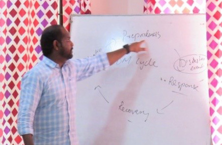 Bodhana invited the volunteers registered in Caritas India & Sannadham portal who are willing to serve the DSSS, at different places for this purpose. Following the COVID-19 regulations, training was organized for the 25 volunteers in the Disaster Clinics wards. DDMA coordinator Mr Mohith R Sekhar was the chief resource person who led the sessions related to the Disasters and preparedness to reduce the risk of disasters in the community. He oriented the volunteers on disaster and hazard, disaster management cycle, DM act, many technical terms and also explains about the basic information of the district. An interactive session was scheduled after the input to resolve queries and doubts of the participants.