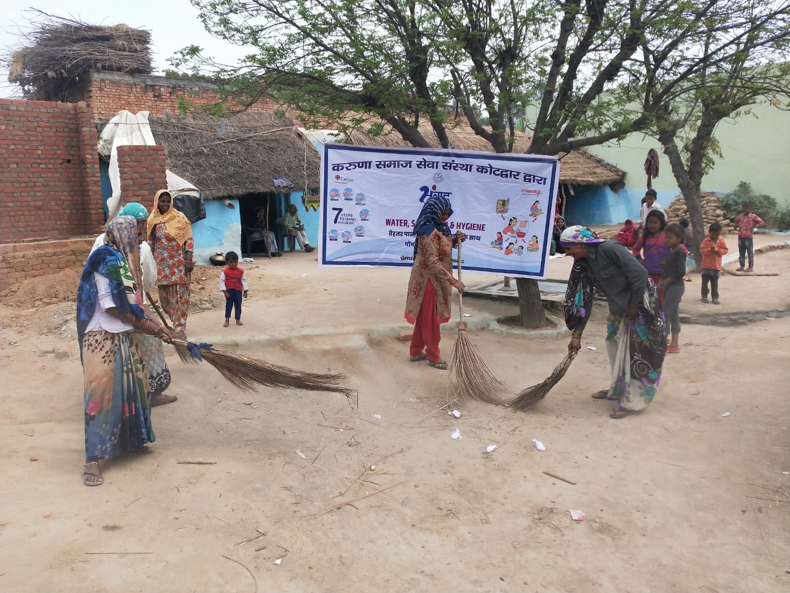 The program has made significant changes within a few months by stimulating positive mental frames and perceptions within the inhabitants in the focused areas. To inbuilt the concept of communities’ participation and ownership, a cleanliness drive was organised by Caritas India’s local partner Karuna Social Service Society. Around 50 people from three villages carried out the cleanliness drive on the School campus, drainage, handpumps, roadside and other areas with their local resources.