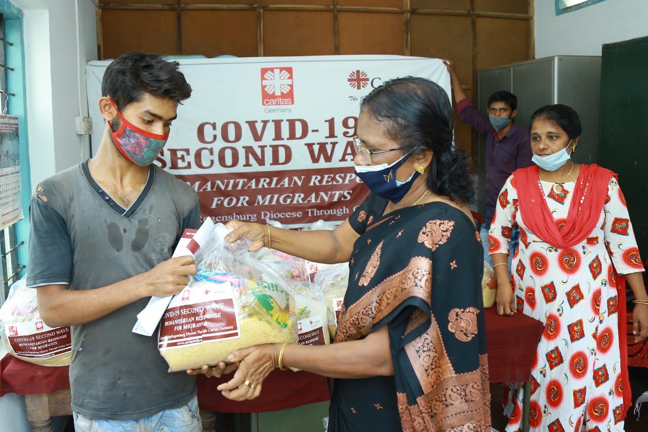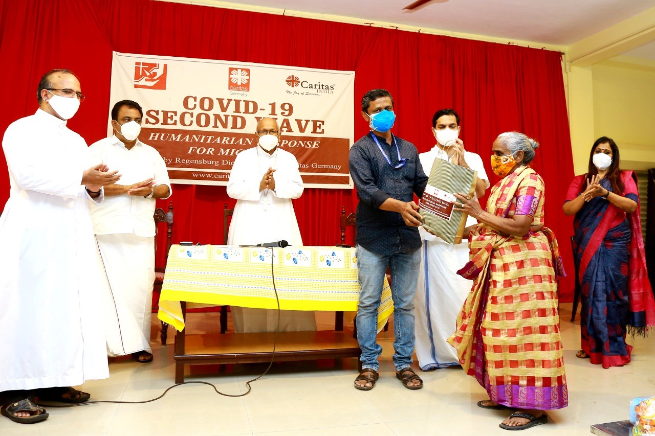 This help is going to support my family and many other families will be benefitted from it. I have received support for the first time in my life. I’m grateful to Caritas India, Caritas Germany, Regensburg diocese, and Cochin Diocese for their kind support” said Mr. Suresh S.  from Tamil Nadu who is now working in Kerala as a migrant worker. Mr. Suresh is a sewage worker in Cochin and lives with his mother and wife. His wife is a housewife and his mother has many health issues. During the lockdown, he lost his work and his family struggled to get their daily living. Like him, many migrant workers’ families were struggling to earn their living during the lockdown. These migrant families were supported through food kits and hygiene kits.