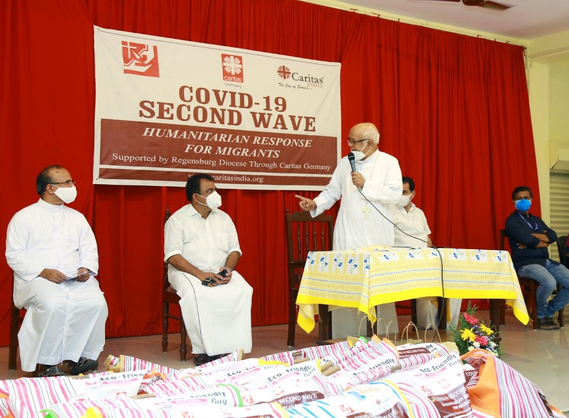The covid-19 emergency project was inaugurated by honorable MP Shri. Hibi Eden on 17th July 2021. Rt. Rev. Dr. Joseph Kariyil, Bishop of Cochin diocese was present for the distribution program. Rev. Dr. Augustine Kadeparambil, Director of Cochin Social Service Society informed that they are going to support 1626 individuals with food kits, hygiene kits, medical kits to the migrant workers who are affected with Covid-19, and direct cash to those who have lost their earning members. This is the first project which diocese is implementing to support the migrant workers and looking at the needs of the migrant workers in the district, Cochin diocese will continue to sustain the project to reach out to the migrants.