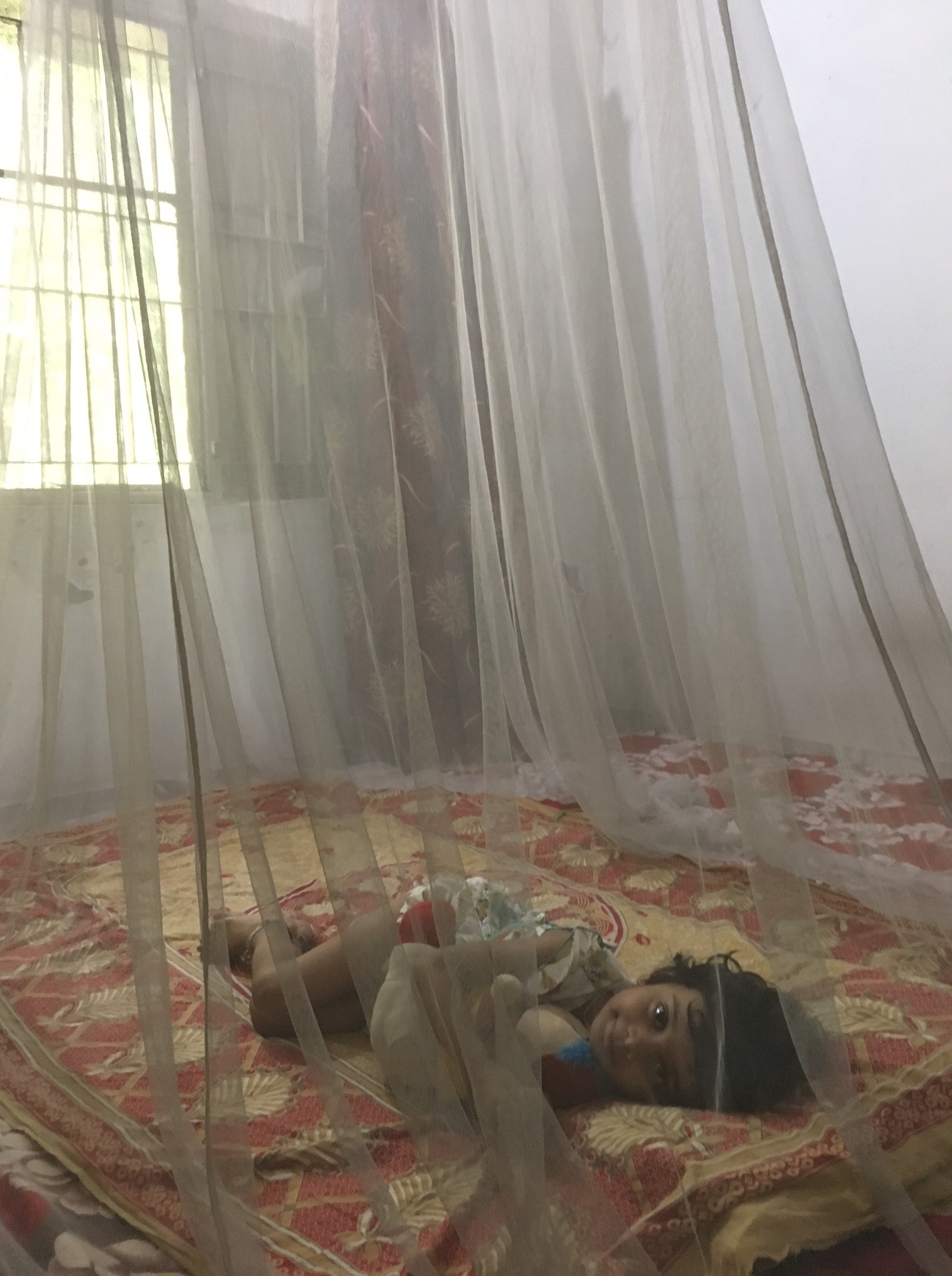 (2nd Prize – Good night sleep smiling face Use of mosquito net malaria free life – At home in Delhi by Leeza)