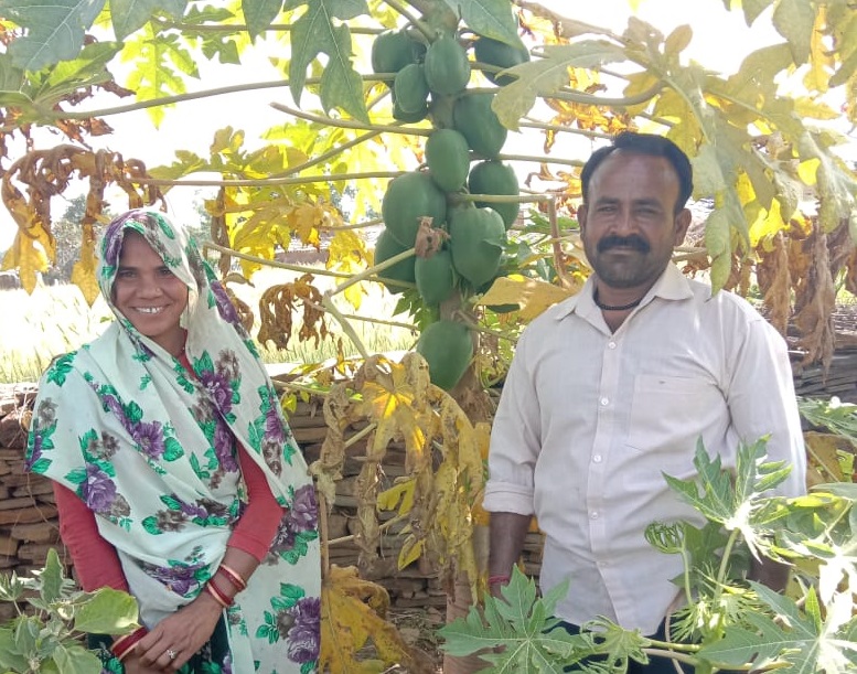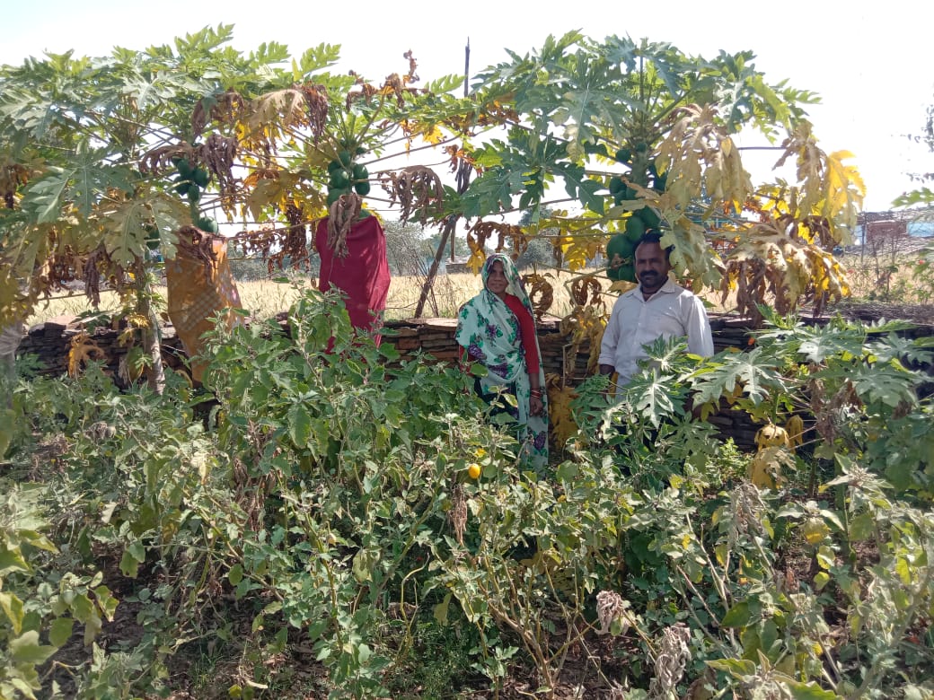 Lakshman, a smallholder farmer from Sasan village of Sagar district in Madhya Pradesh successfully developed a diversified homestead garden (i.e. 12 additional vegetables & fruits- brinjal, tomato, chilli, spinach, cauliflower, carrot, bottle gourd, green beans, fenugreek, french beans, radish, papaya & drums stick stumping) with the help of SAFBIN program. Within 3months of the period, he sold 60-70kgs of his farm produces out of 120Kgs earning about Rs. 300.00 per day basis while Rs. 2100 in a week, Rs. 8400.00 in a month and Rs. 1,00,800.00 per year. Every other day he used to harvest 4-5 varieties of vegetables and sell it in the local market.