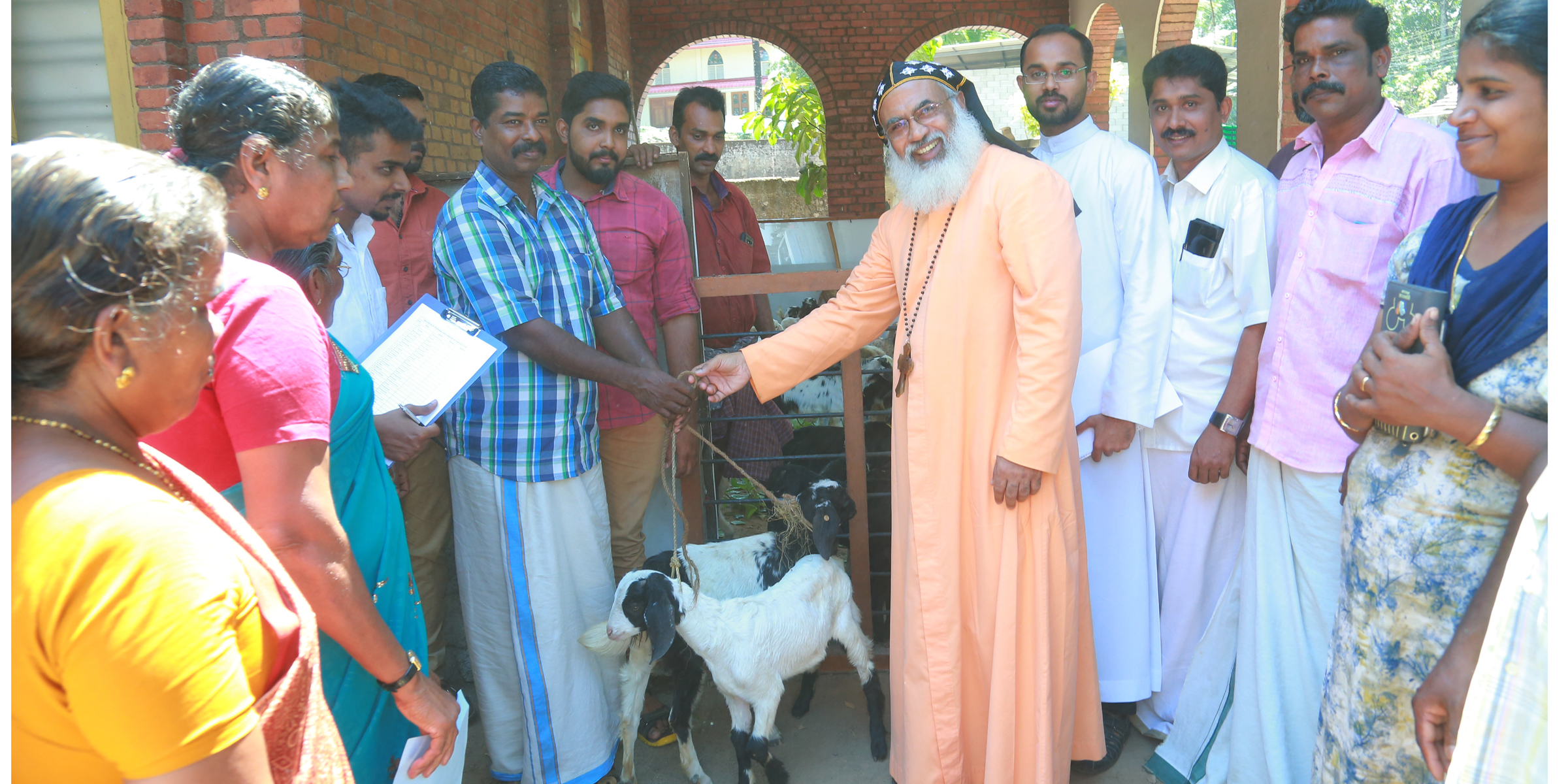 Rev. Fr Samuel Vilayil, Ex. Director, Bodhana welcomed all the guest and participants. The IGP program was inaugurated by Sri. Cherian Polachirakkal, the Chairman of Thiruvalla Municipality. In the inauguration ceremony, 100 goats (2 each) were given to the 50 families and 30 & 35 HH’s received shelter support money and water filters as part of the Programme. The selected beneficiaries of the response programme are the poorest and vulnerable families including families with elderly, single women and disabled persons.