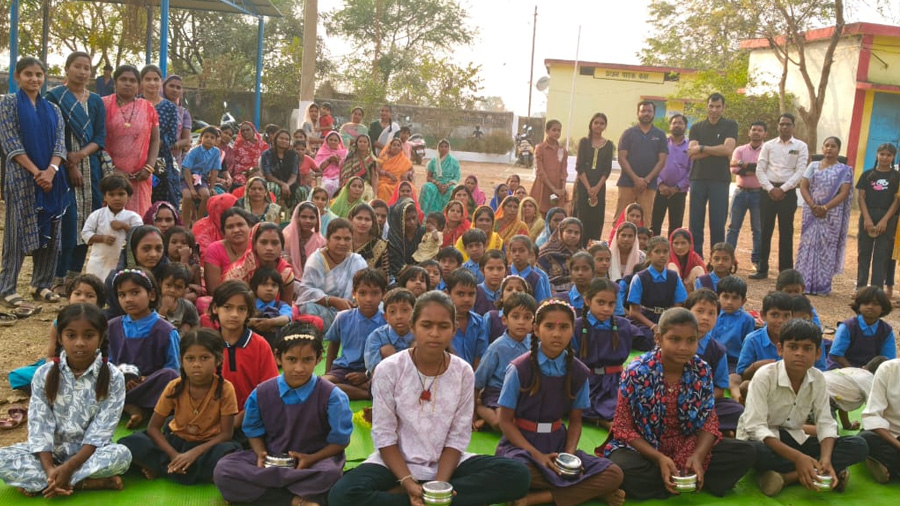 The review process began with an extensive field visit on 27 January 2026 by Fr. Benny Edayath, assistant executive director of Caritas India, and Dr. Saju M.K., Khushaal Bachpan programme lead, along with the state programme associate. The team visited five project villages—Alesur, Chhadiya, Madadih, Kevradih, and Bardih—to independently observe programme implementation and engage with children, community-based organisations, Panchayat members, Sarpanch, and income generation activity beneficiaries. Communities welcomed the team with traditional aarati, reflecting strong ownership and trust in the programme.