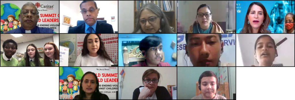 “As we join today at the World Summit of Child Leaders to celebrate World Children’s Day 2020, this moment presents a historic opportunity to unite the world behind a global, national and local movement to protect the world’s most precious asset – its children. Let’s all hear out the Child Leaders from all across the World and listen to their concerns and recommendations towards Ending Violence against children and recommit ourselves to work towards Sustainable Development Goal  16.2”; were the opening remarks from Rev. Fr Jolly Puthenpura, Assistant Executive Director, Caritas India.