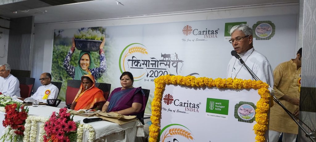 Reciting the slogan of our second prime minister Hon’ble Shri Lal Bahadur Shastri – “Jai Jawan, Jai Kisaan”. Archbishop of Bhopal Bishop Leo expressed that farmers are the backbone of India and asked the Government to extend its support for the welfare of the farmers. He also appreciated the tireless services of Caritas India and her partners to address the needs of the poor and marginal farmers. Padma Shree Rahibai shared that despite of all the resistance and challenges she could successfully prepare 5000 women farmers of her village. Bp. Sebastian Kallupura and Bp. Gerald emphasized on remembering the great contributions our farmers have made towards the nation-building and expressed concern on the market exploitation faced by farmers. Ms. Pratibha Shrivastav, state representative of MP – Welthungerhilfe, stressed on the nutritious food for the family members of the farmers. Rev. Fr. Paul expressed his happiness that Caritas India was able to provide a broad platform for all the farmers through this festival programme. He shared that Caritas India is always responsive to the problems and issues faced by the small and marginal farmers.