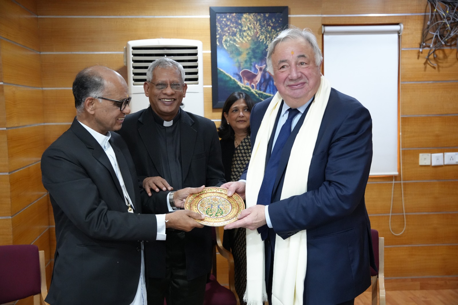 Chairman of Caritas India, Archbishop Sebastian Kallupura facilitated the dignitaries and presented Mr Gerard with a memento as a token of appreciation. On behalf of the delegation, Mr Gerard honored Archbishop Sebastian with a medal symbolizing the secular and democratic principles of France.
