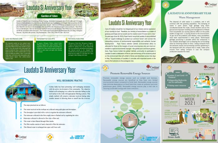 Reiterating the urgent challenge to protect our common home, Fr. (Dr.) Jolly Puthanpura, the Assistant Executive Director of Caritas India insisted to connect the intersecting concerns of environmental responsibility and authentic human development. He informed that Caritas India has been releasing posters each day of the week with the message to promote Eco restoration measures. In addition, Caritas India has organized virtual webinars like ‘Laudato Si and Covid -19 Pandemic’, ‘Safeguarding Biodiversity and Eco-spirituality and Valuing water resources’ to raise environmental consciousness and promote the teaching of Laudato Si at the community level.