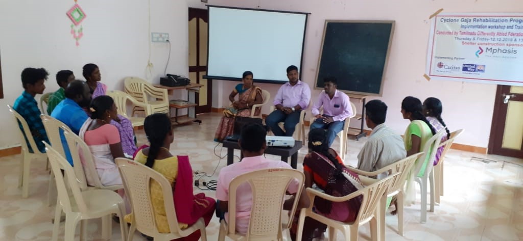 The 2 days training facilitated by TNDFC on 12th and 13th of December, 2019 under the auspices of Caritas India enabled the 5 differently-abled beneficiaries and their spouses to understand the nuances of entrepreneurship through discussion on micro-business, qualities of a micro businessman, identifying the right segment of micro business, doing groundwork and basic analysis,  right area and place,  marketing techniques, recent trends in sales techniques, customer relationship building, attitude building for Aiming high and success formula.