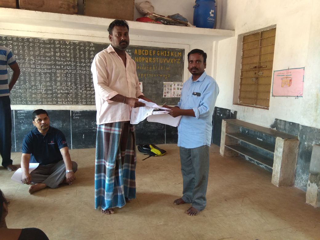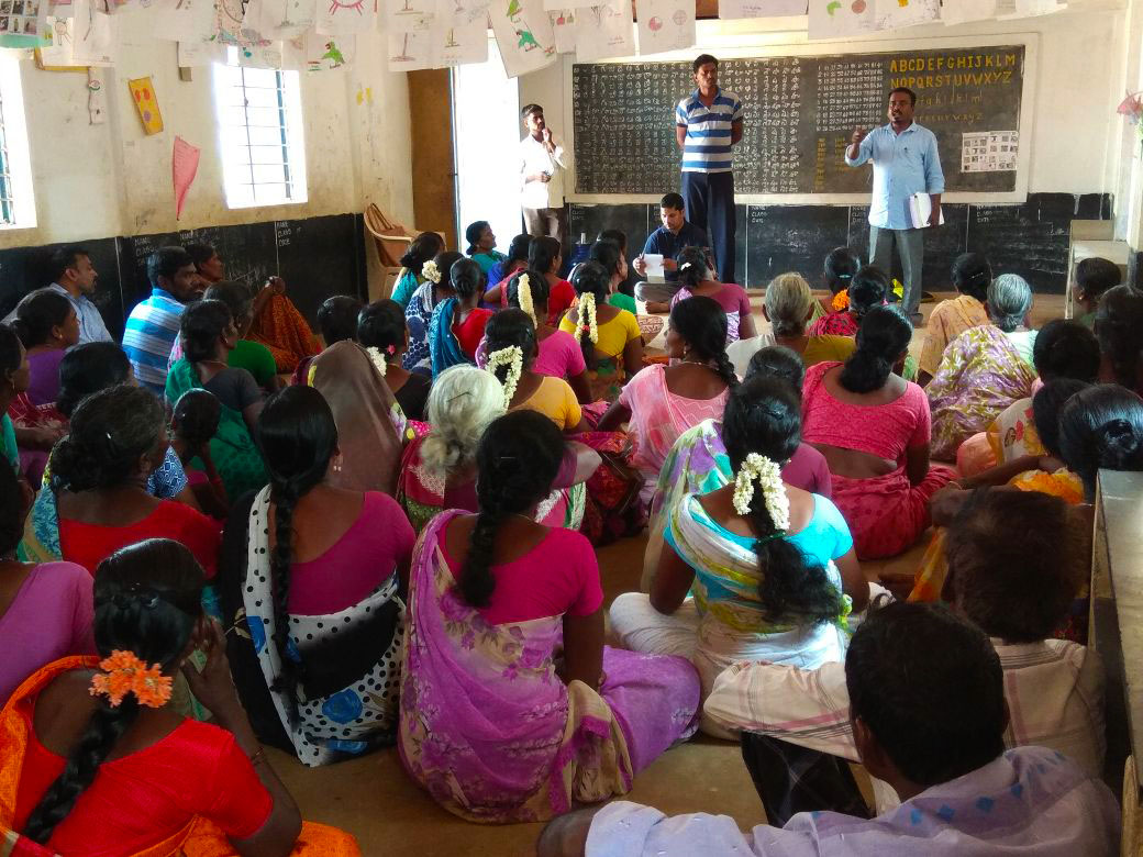 Madras Social Service Society (MSSS) has been actively engaged in people’s organisation since last three decades. MSSS response to Chennai floods of 2015 with the technical and financial facilitation of Caritas India led to a paradigm shift in its approach. People in 5 blocks are trained on Ecosystem-based Disaster Risk Reduction (ECO DRR) programme called Udhayam. They are addressing their day to day issues with DRR lens. Eguvarpalayam village in Gummidipoondi Block of Tiruvallur district is one among such areas. The women here took lead to effectively organise the Grama Sabha on May 1, 2018. Women leaders along with local co-ordinator Ms.Kavita extended invitation to Dr.John Arokiaraj, South Zone Manager, Caritas India to preside over the meeting.