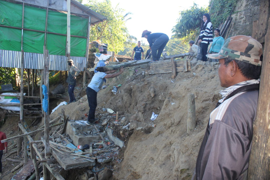 The Village Young Mizo Association (YMA) started the house reconstruction work and it was interesting to observe that not only neighbors but the whole village were eager to help her. Each member of the family including children contributed the very best of their efforts, abilities to construct the house. They brought materials and other available resources for the construction. The unity and cooperation among the community were unforgettable too.
