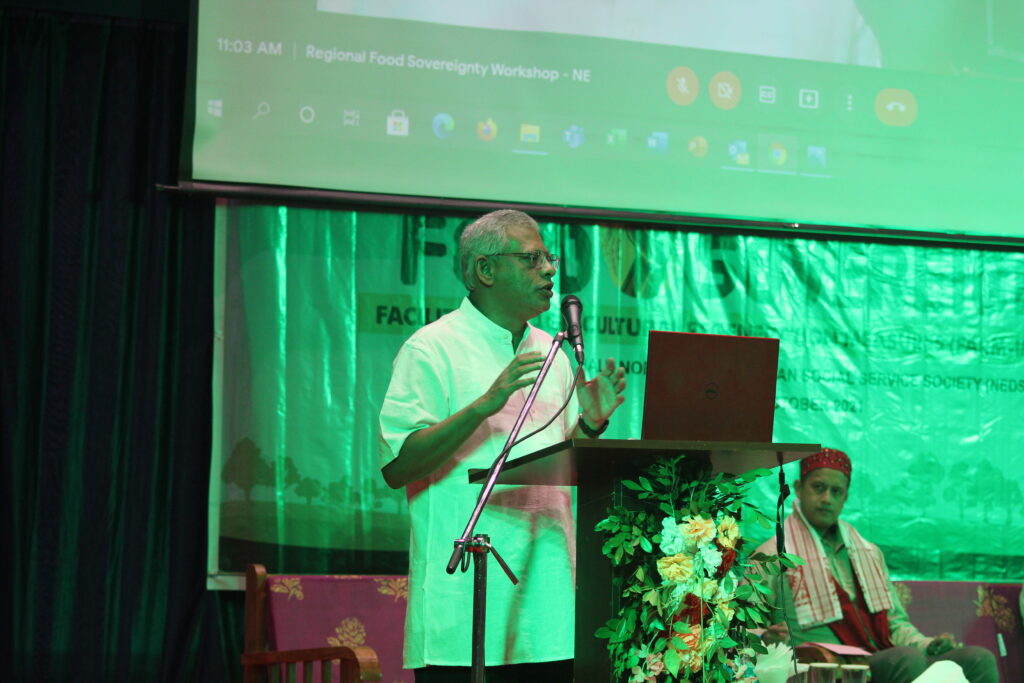 Dr Pranab emphasized on promotion of the local farm biodiversity by diversifying the small farms with maximum local varieties inclusive of cereals, pulses, oilseeds and vegetables to invite pollinators and predators for better farm production. While speaking on this, he also stressed the wild edibles and leaves have great nutritional values and specific characteristics to be used as bio-pest repellents which are natural and no harm to the local biodiversity. Further, he suggests having more on-farm research and knowledge sharing workshops/conferences by providing opportunities to smallholders for sharing of their learnings and experiences with smallholders of other regions and stakeholders for better empanelment and technological blending of scientific knowledge and traditional wisdom.