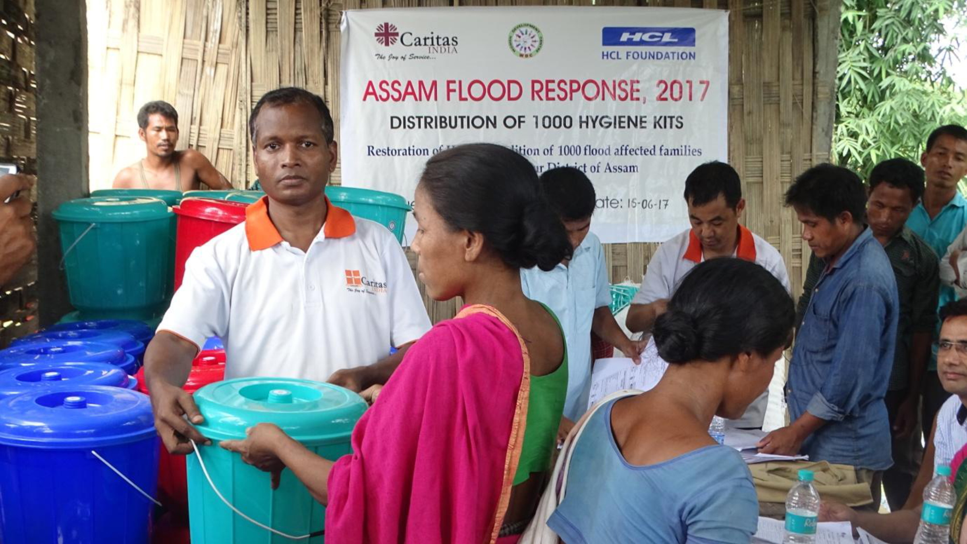 Caritas India in collaboration with HCL Foundation organised health camps and treated more than 800 patients at Nowboicha Block under Lakhimpur district in Assam. Hygiene kits were delivered to 1000 families to meet their basic needs. In addition to this, 2000 mosquito bed nets were supplied to 1000 families who are vulnerable to mosquito bites as there is huge amount of water stagnation in different places. Under the START fund response, Caritas India and CAFOD is supporting 1600 families with WaSH and unconditional cash transfer in the Lakhimpur District.