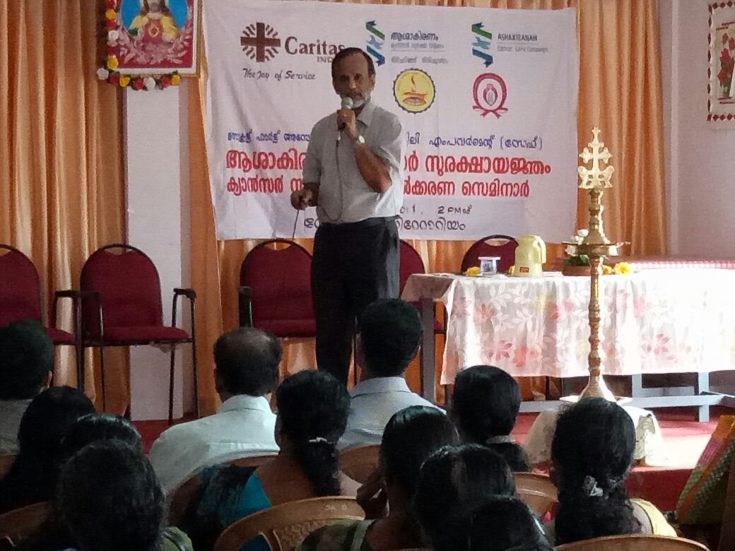 Nuns from Sacred Heart Congregation is one of the partner of Caritas India’s statewide Cancer Care Campaign – Ashakiranam in Kerala. They are engaged in the preventive campaign to inform and aware people on the Cancer and encourage people to adopt healthy life style. All the eight SH Congregation provinces in Kerala are systematically involved in Ashakiranam Campaign. 11 provinces and 452 nuns in the congregation registered themselves to support the cancer campaign as Ashakiranam volunteers. They not only promote volunteerism within their congregation but outside too.