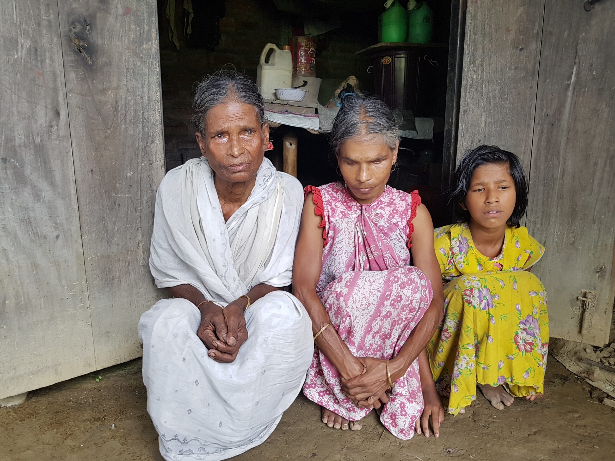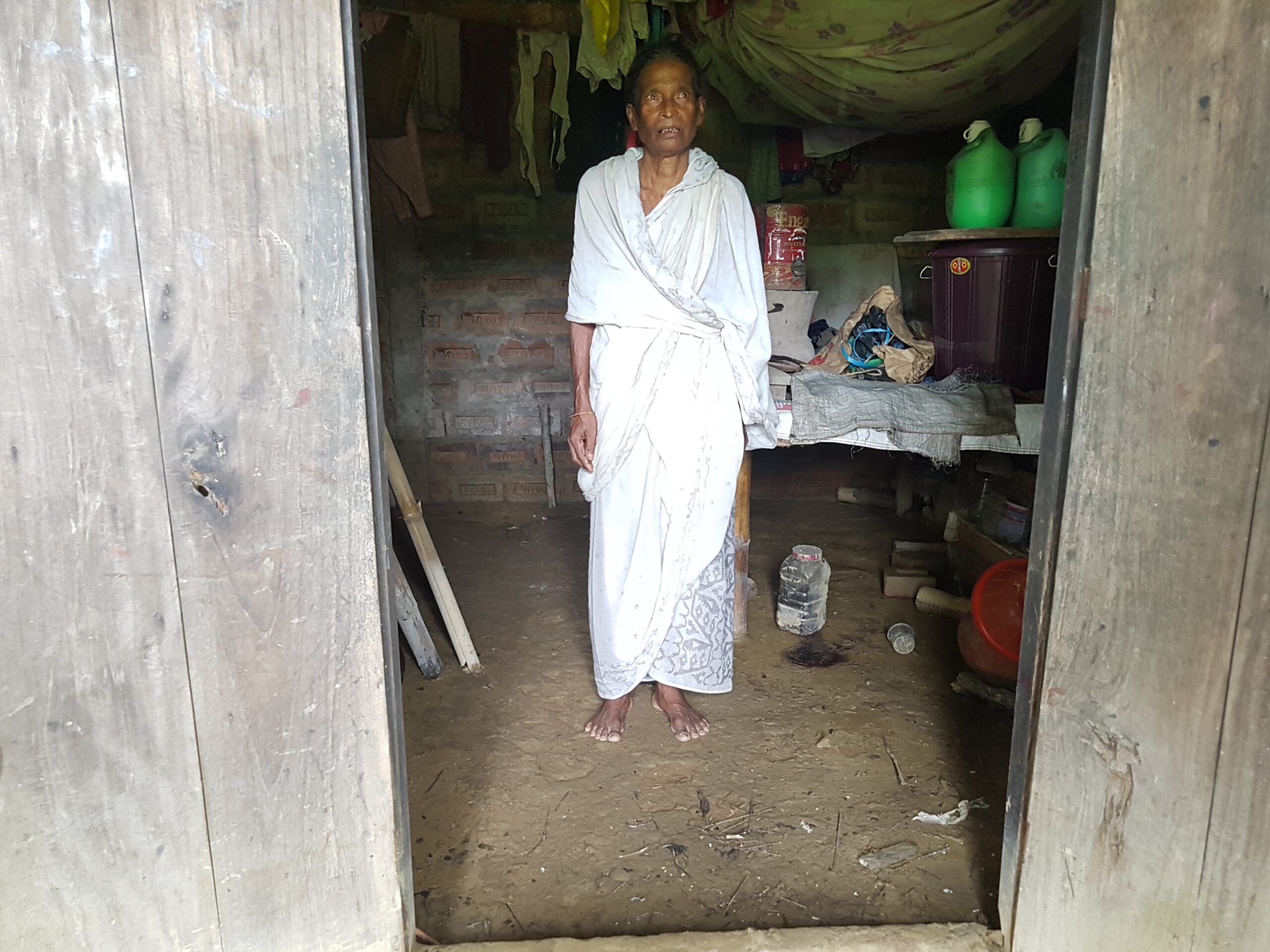 Oli Nag at an age of 75 is a skinny and frail woman with a responsibility of feeding her visually impaired daughter Kalpana and granddaughter Kolika. She does the cleaning of utensils and floor at different houses and sort potatoes and onions for the village shopkeepers for a handful of rice, dal or just a cash of Rs. 10 or 20 and this is the only source of income for the family. She only gets 10-20 days of work and rest of the month they survive on people’s mercy or go to bed with an empty stomach.