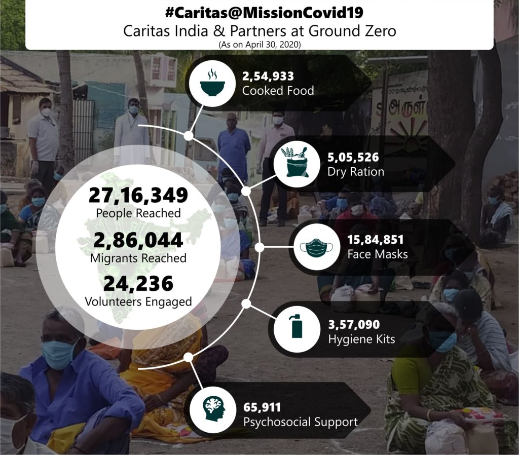 As the country is seeing a surge in positive cases of Coivd-19 and the Coronavirus pandemic continues to affect the population, Caritas India along with her partners has prominently made some realistic relief efforts to support as many as vulnerable people possible through effective mechanisms and processes in place focusing widely through its philosophy of 4 pillars.