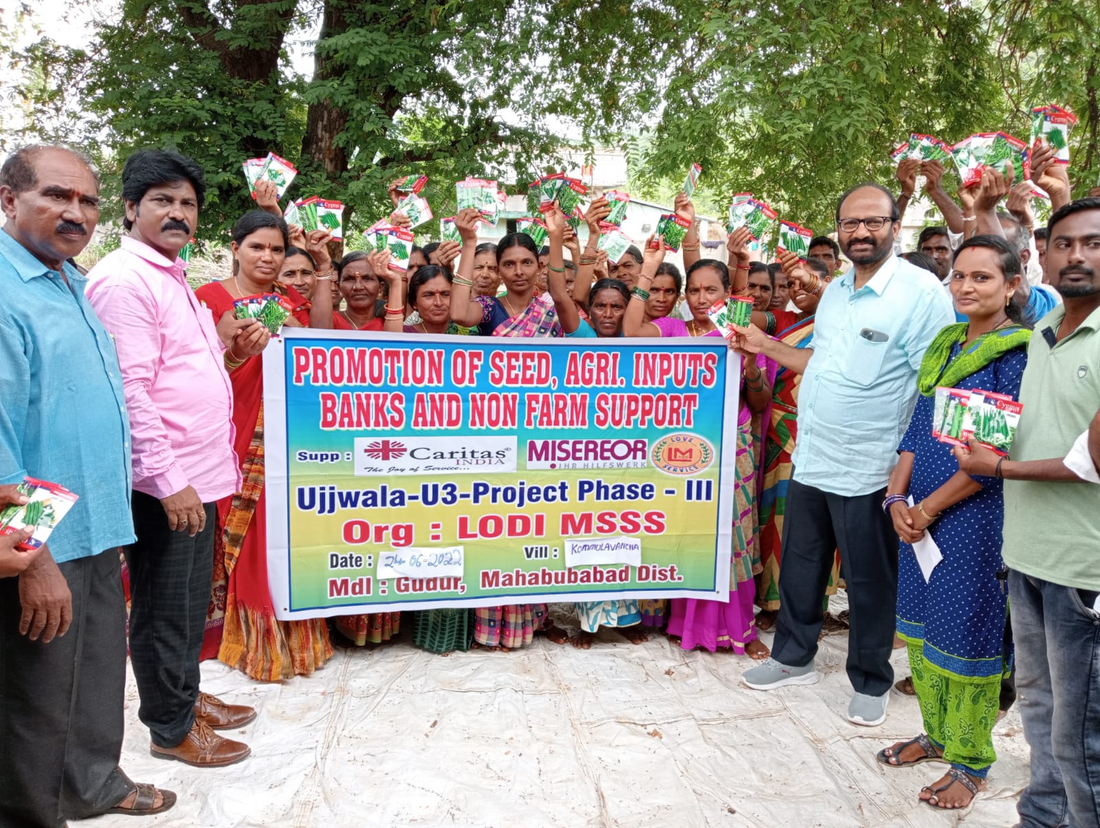 Inspired by World Environment Day, the Caritas India U3 program in Telangana decided to extend this celebration by dedicating a week use organic methods in agriculture U3 partner, Lodi Multipurpose Social Service Society (LMSSS) celebrated “Organic week” from the 22nd of June to 26th June 2022 in six villages of Gudur Mandal of Mahabubabad district, Telangana. The main objective was to promote the production of natural farming and hence Save the Soil and sensitize the farmer group on Integrated Pest Management (IPM) / Non Pesticidal Management (NPM), dissemination of IEC materials and indigenous seeds, demo of Organic Preparations such as Jeevamrutham and networking and dialoguing with Agriculture Department on Capacity building.