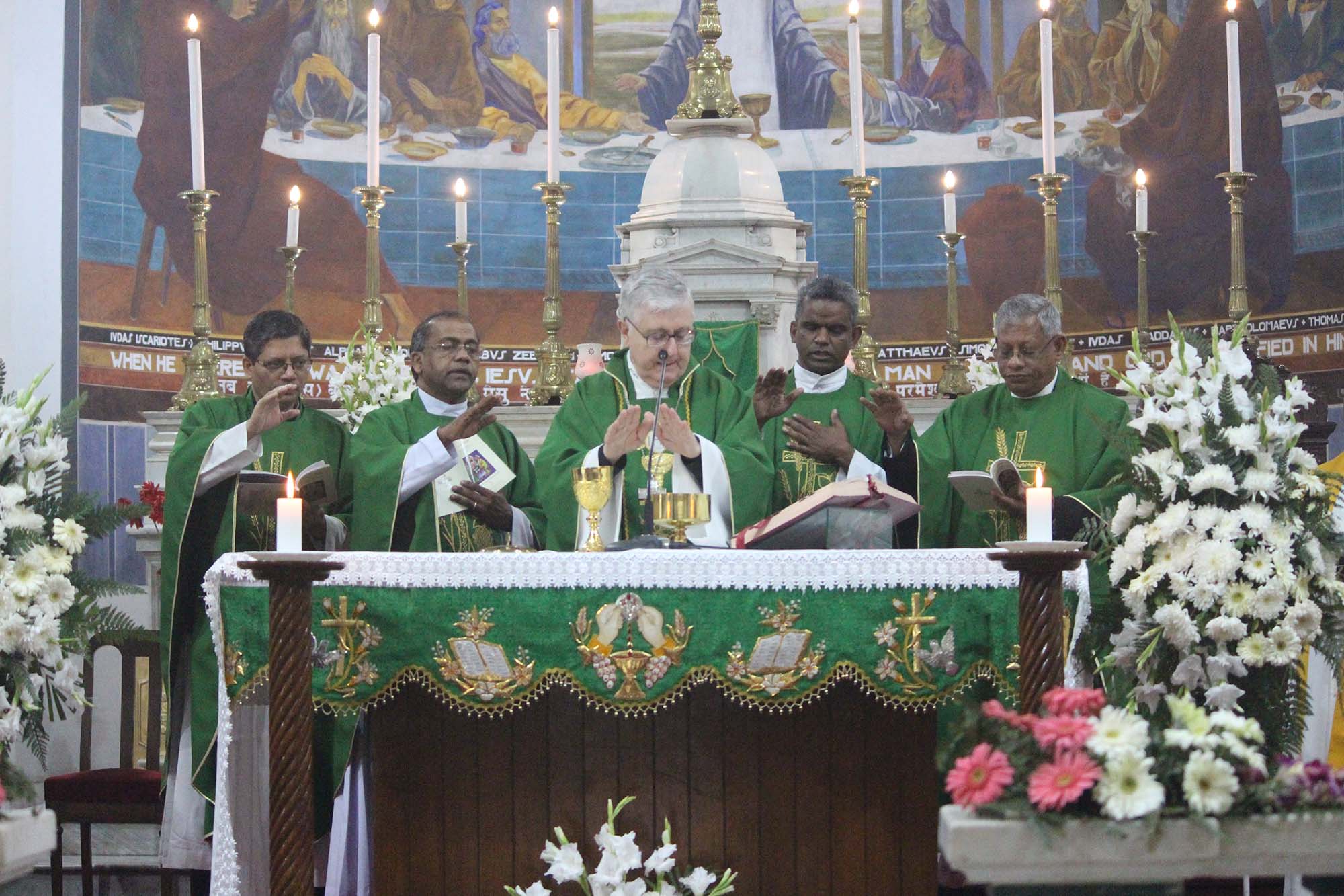 The campaign’s first National launch was initiated with Holy Eucharistic Mass at the Sacred Heart Cathedral celebrated by Archbishop Giambattista Diquattro, co-celebrated with Fr. Paul Moonjely, Executive Director, Fr. Jolly, Assistant Director and Fr. Sushil Modi, Administrator of Caritas India along with other priests. A special Liturgy was prepared for the mass to officially open the launch.