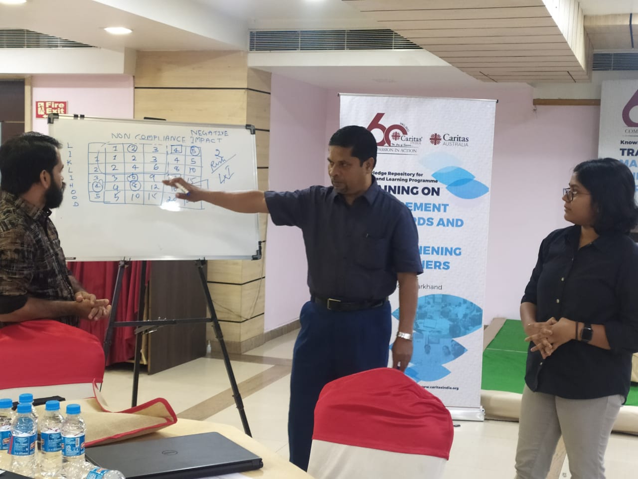 The expected outcome of the training was to develop partners’ capacity to assess internal and external risks that may be preventing them from achieving organizational goals. This self-assessment calls for objectivity which needs to be done meticulously and periodically. Preparing an improvement plan based on the CIMS scoring and ensuring measures are in place to reduce these risks. This was well achieved with the support of Dr. John Arokiaraj (Thematic Lead in Caritas India and Caritas Internationalis Management Standards Assessor) who facilitated the entire session with practical examples and individual and group exercises that helped understand the concepts with clarity.