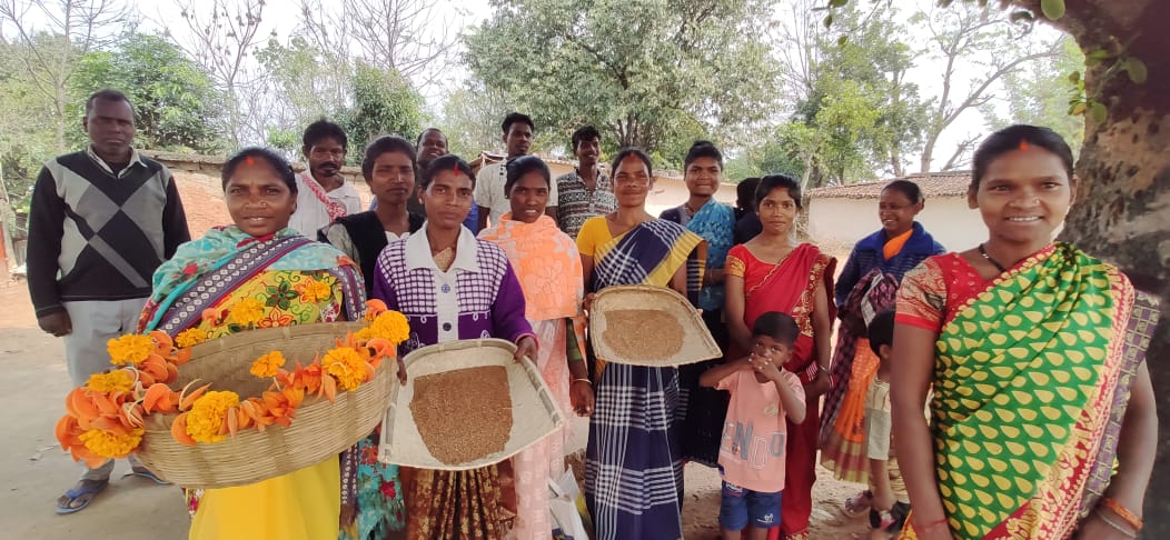 During the years 2022–2023, 83 farmers from Jaratoli and Kamta received finger millet seeds as input support, cultivating and harvesting them to meet nutritional and economic needs. Witnessing the success of millet cultivation and the associated health benefits, the farmers decided to pay it forward. Despite budget constraints limiting seed distribution, the villages pooled their surplus finger millet seeds and, on February 14, 2024, gifted them to fifty new farmers in Arwabera village.