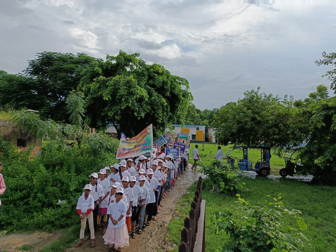 The rally began at the Government Junior High School, where children were equipped with T-shirts, caps, and wristbands that not only protected them from the rain but also symbolized their collective commitment to peace. As they marched through the streets, their voices rang out with slogans of hope and unity, creating an atmosphere charged with positivity. The 2.5-kilometer journey concluded at Baroli Ahir Junior School, leaving behind a trail of inspiration and optimism.