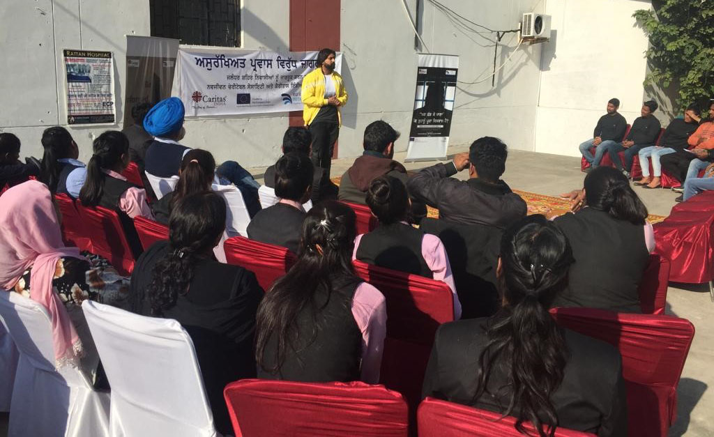 Caritas India is opening a dialogue with the District Development, Block Development and Panchayat Officials, Gurudwara Committees other concerned Dept. Govt officials, Police and potential migrants for the exchange of information and to support and develop an awareness and sensitize potential migrants and their families for preventing irregular migration. Major activities under this awareness campaign like roadshows, street plays and seminars in College/High schools and IEC material distribution at public places is being conducted with the local partner to aware people and potential migrants about the realities and potential risks of unsafe Migration from Punjab to Europe.