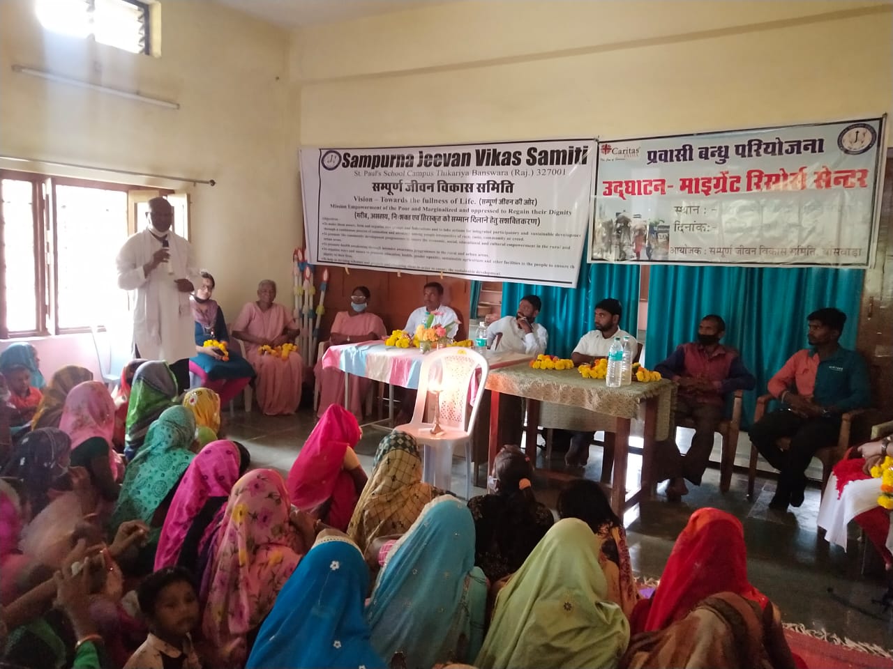 Sharing about the empowerment of the migrants, Fr. Kulranjan Director of SJVS stated that it is very important to keep the voices alive so they can raise their own rights. He shared that there are various govt. schemes for them, unfortunately, they do not reach out to the workers because of lack of awareness and there is no one to facilitate the same. However, Pravasi Bandhu is the first-ever program in Banswara that has recognizes the invisible issues of the workers who often face such challenges, and this is a much-needed program at this hour. He pointed out few cases where the workers do not receive their wages and finally come back to the villages with nothing in their hands. He shared that how this program will help all the migrants to ensure their rights. For the better reach of this program Father Kulranjan requested to highlight the event in the local newspaper of Rajasthan (Dainik Vaskar).