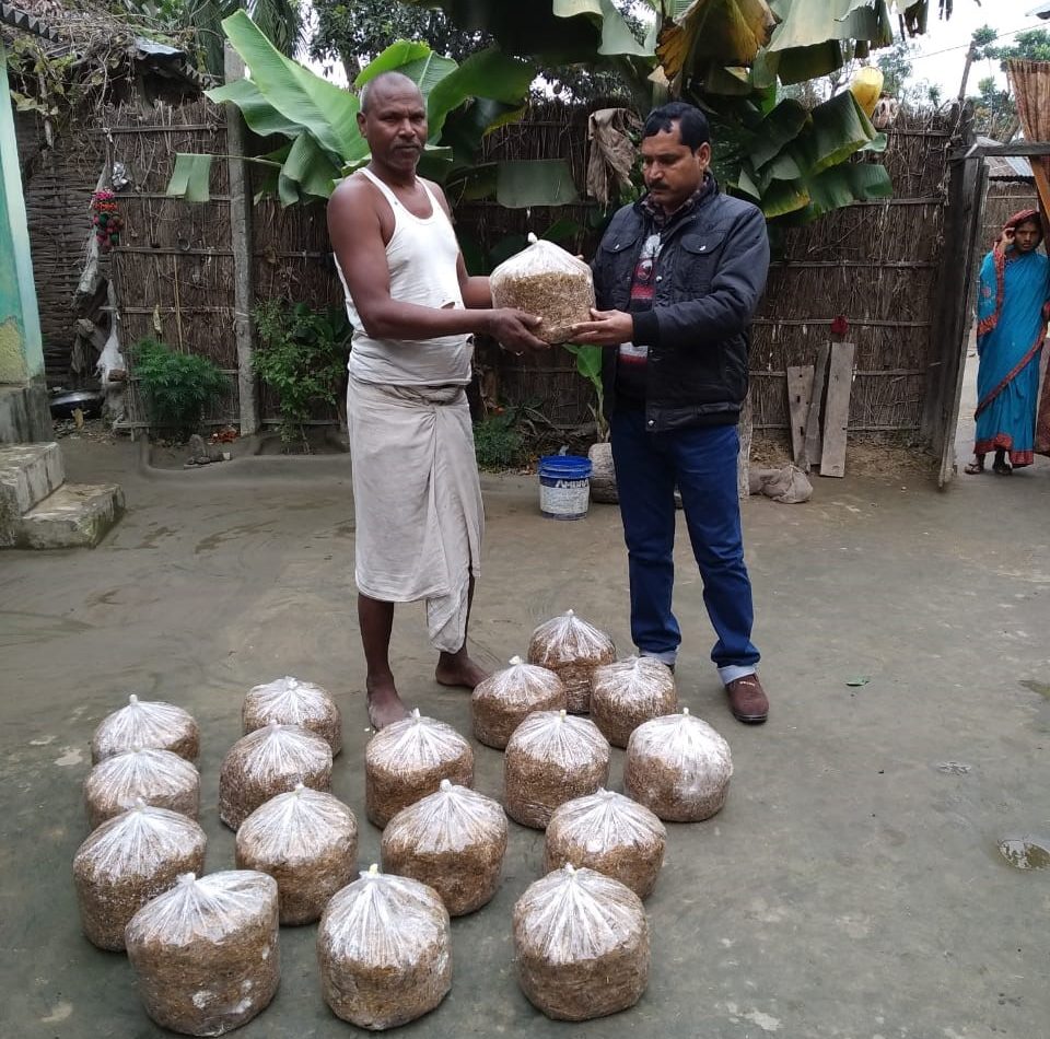 700 kits of Oyster mushrooms were distributed to 23 marginalized farmers through government schemes in collaboration with the Agriculture department ( District Uddyaan office Supaul).