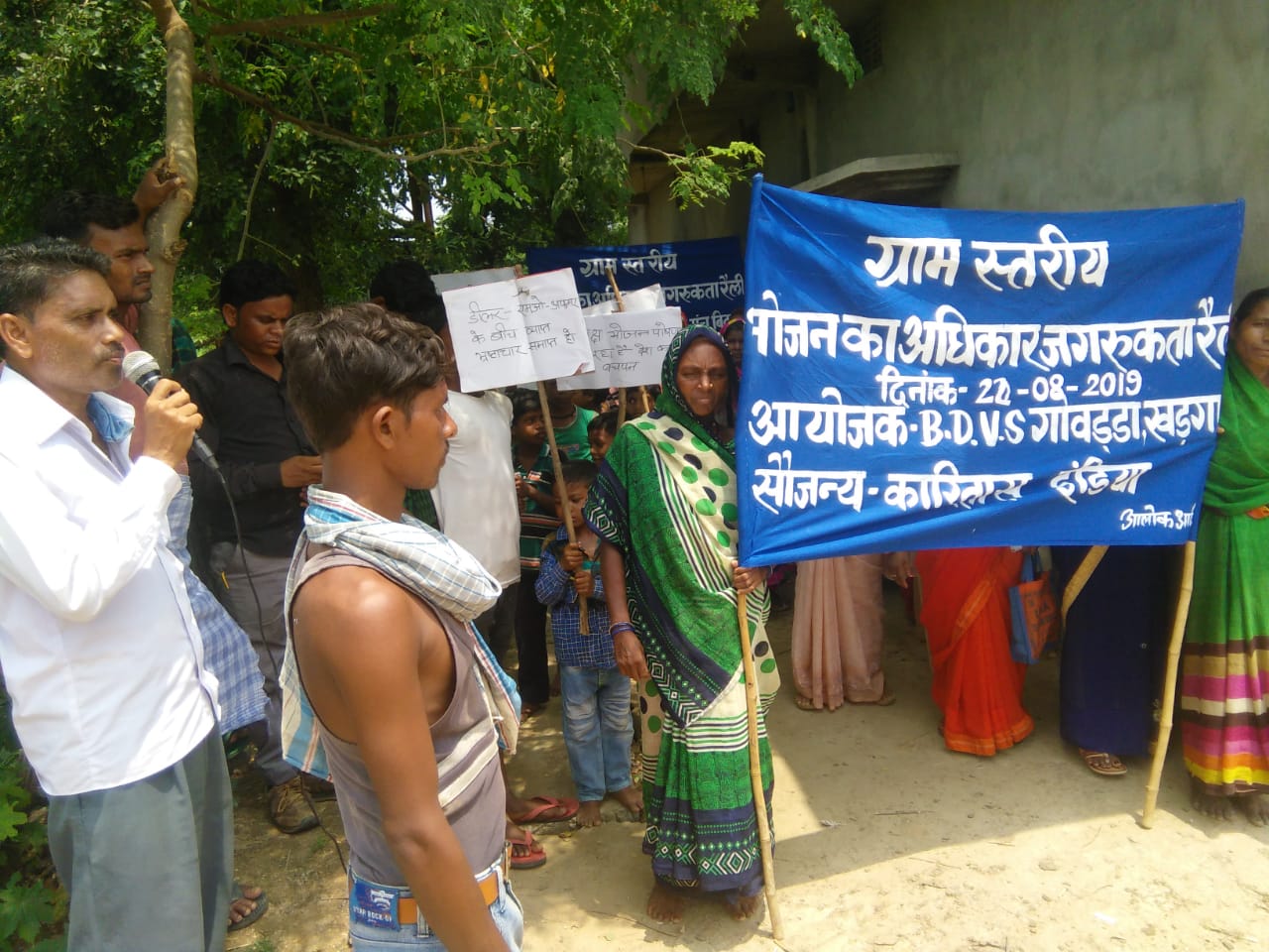 The immediate result of the people marching on foot was that the president of village Gobadda, in Haveli Kharagpur block, assured the people of surveying the villages to assess the households lacking the TPDS registration, and ensure their coverage under the scheme by the end of the year; have a PDS shop in their hamlets, with regular and timely delivery of the ration. While giving out the assurance, he recognized the leadership of the women in this rally. A contingent of adolescent girls from Roshni Ki Toli shared about the dissatisfactory status of mid-day-meal in their schools and asked for improvement and compliance to the food menu. He assured taking up the matter with the School Management Committee, as the members reached out in the rally also included the tola sewaks and schoolteachers.