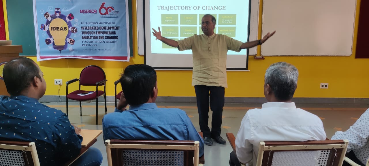 A full-day reflection meeting on Integrated Development through empowering animation and sharing (IDEAS) was organized for the diocesan directors of the Southern and Western Region on 21 February 2023 at KROSS Bengaluru. 30 participants from both regions along with Caritas India staff participated in the reflection meeting.