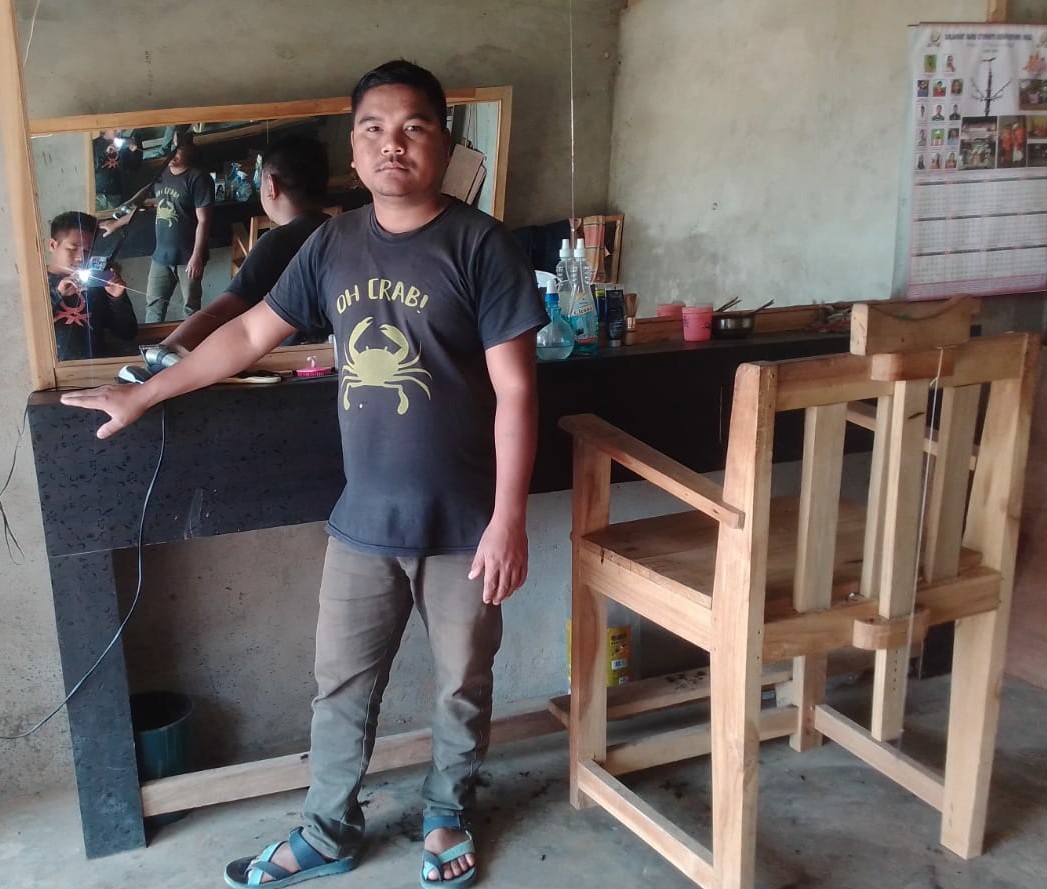 Every morning Welson Teron sets off from his house at Sam Teron village in Karbi Anglong, Assam to a Bokajan. He starts the day with the cleaning of his shop and tools and then only pulls up the shutter of his Barbershop. He has started this shop after losing his job in Arunachal Pradesh as stone crusher.