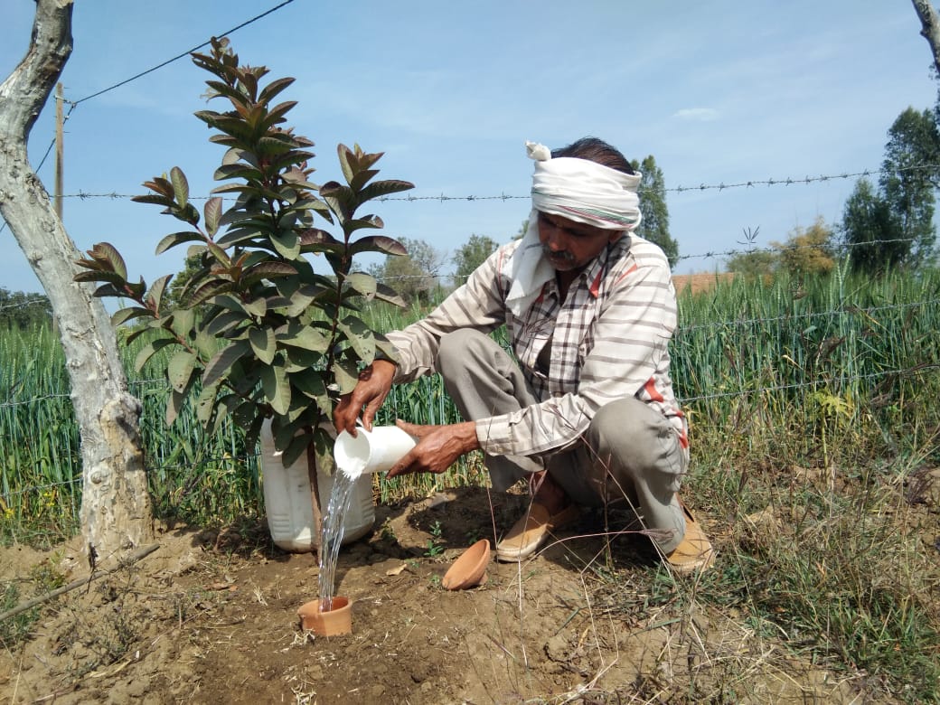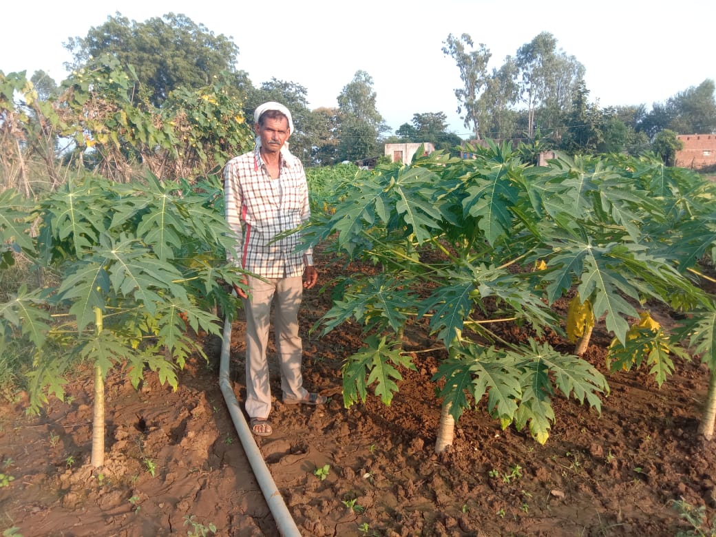 Puran Singh, one of the smallholder farmers of Saasan village of Sagar district lives with his small family. Having a small piece of upland (2acres), it was not so easy for him to meet the family’s food requirement. Like others, he was also limited to seasonal black gram and wheat cultivation hardly ensuring food for 6-7 months. The rest of the year, he had to search for work to feed his family. Gradually he was part of the smallholder collectives formed by SAFBIN program and undergone various on-farm trainings and started following the practices carefully. Over the years, he slowly increased the components from three (3) i.e. crops (wheat, mustard, black gram), livestock (buffaloes) and 4-5 seasonal vegetables to five (5) i.e. field crops (wheat, Oats, Gram, Black Gram, Mustard, Lentil, Soyabean & ground nuts) livestock (cattle and buffaloes), small ruminants (goat), Fruit trees (mango, guava, papaya, lemon, jackfruits), green fodder (berseem & low-cost hydroponic fodder cultivation), straw and almost 11 types of local vegetables. Apart from this, he is utilising meaningfully the own farm waste and resource in preparing botanicals like matka khad, lamit ark, dasparni ark, vermi compost to reduce the input cost while maintaining his farm ecosystem.