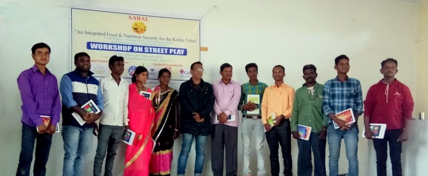 Caritas India under its flagship programme Sabal organized a 3 days’ workshop on Street Play for all the Sabal partner staff and Poshan Mitras (Voluteers) from 6th – 8th February 2019. The programme was focused on enhancing the skill and knowledge of the participants on performing street play programme at village level. A group of seven active Poshan Mitras who are volunteering for the initiatives of Sabal were identified by every partner who were trained along with the Sabal nutrition health workers (NHWs) to develop their skills in performing Nukkad Natak. The 3-day programme was facilitated by Mr. Deepak Nandgaokar (Director, Gandharva Multipurpose Society) and his team.