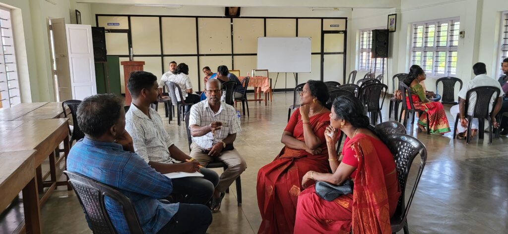 The grassroots-level training programs, organized by the Regional Level Task Force Volunteer lead, serve to empower selected grassroots Task Force members with essential skills and knowledge. Typically held in parish halls or community settings, these sessions often include the participation of Panchayat or Ward members and the DSSS parish priest. Drawing from their training received at the DSSS level integrated training programs, the trained Regional Level Task Force Volunteer leads facilitate these sessions. They not only impart crucial insights but also support grassroots Task Force members in actively engaging in DSSS anti-drug activities within their respective areas. Supported by dedicated Regional Level Task Force Volunteer Leads, as well as Sajeevam DSSS Campaign Officers and the collaborative efforts of 32 DSSS partners, approximately 7,500 Task Force members have been trained. These members are now deployed in the field, reaching out to households, schools, and other institutions, committed to the mission of fostering drug-free communities and families.