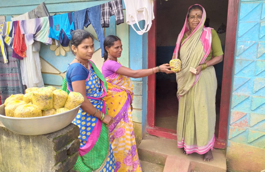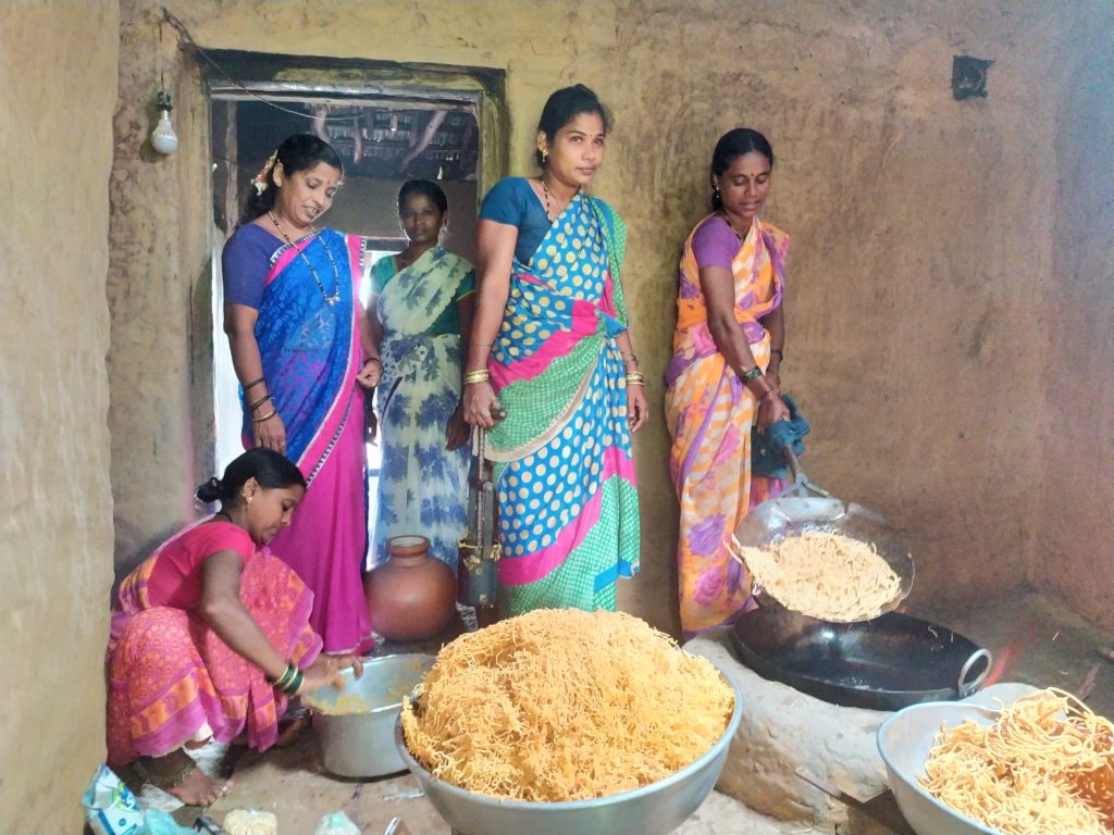 As part of the collective business, in the second phase of Ujjivana, team BDSSS embarked on creating unique models of empowerment. Netra SHG’s 4 women were quick to comprehend the opportunity and under the aegis of BDSSS initiated preparing of bakery edibles and snacks. The SHG got support from the Ujjivana project partially. The business plan was of Rs. 26000/- where the project contributed Rs. 10000/- and the rest was pooled in by the SHG. Today, this income generation activity is nowhere to be seen in the surrounding areas. BDSSS and Caritas team gave them proper methodology and standard operating procedure.