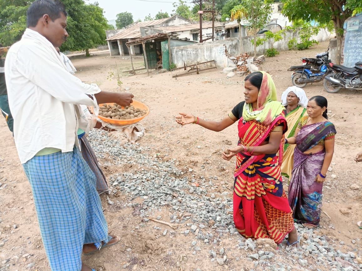 The SHGs at Manikyapur, Kollamguda, Akunur, Ginnedhari and Tiryani villages in Adilabad District are engaged in making and throwing these seed balls in their degraded forest lands, Community lands Roadside shelter belt areas etc with the Fruit-bearing, Medicinal properties and Shade provider plants such as Pongamia pinneta (Karanj), Cassia Fistuala (golden shower), Azadirachta indica (Neem), Syzygium cumini (Zamun) and Bombax ceiba (Silk Cotton), Artocarpus ( Jack fruit) Terminalia Arjuna (Arjun) Terminalia elliptica (Crocodile bark) trees which are available in Forest areas. The DSSS staff of the U3 Project motivated and trained the SHG groups on collecting techniques of the Seeds from wilder areas, and making the seed ball are been trained. They have started collecting the seeds /Pods during its season and started the making of the seed balls by the groups and preserving them to broadcast in the required time. This work has been doing by collectively by children, men and women. Children are fond of collecting the seeds and making seed balls with joy and fun.