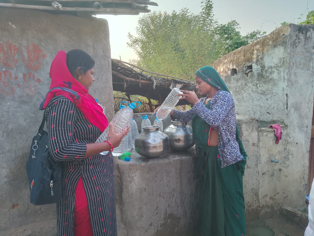 In a tribal community, there were many myths including never storing water for more than a day for drinking, so they used to get water from the open wells and handpump sources on daily basis. After the intervention, the belief system slowly changed and they started collecting the water in the evening from all the 10-13 bottles (20-26 litres of water) and filling it in the pot and drinking it the next day. Every morning they keep the water collected from the open wells and handpump in the bottles in sunlight for the WADI and SODIS disinfection and purification.