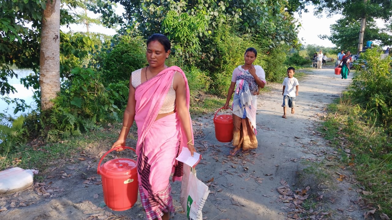 Mr. Birju Kharia, another beneficiary, has three daughters who are currently staying with relatives outside the village. He explains how the floodwaters have destroyed their paddy seedlings, leaving them with no prospects for growing rice this year. “The tea garden closure and the flood have left us without any means to earn. The relief from Caritas India is crucial for us to survive this crisis. We need long-term support for our livelihood and health,” he pleads.